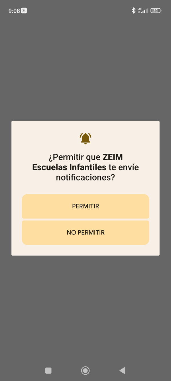 Despues de instalada la aplicación, la primera vez que se abre se mostrará un mensaje emergente solicitandonos permiso para activar las notificaciones, si queremos recibirlas debemos pulsar el botón "Permitir".